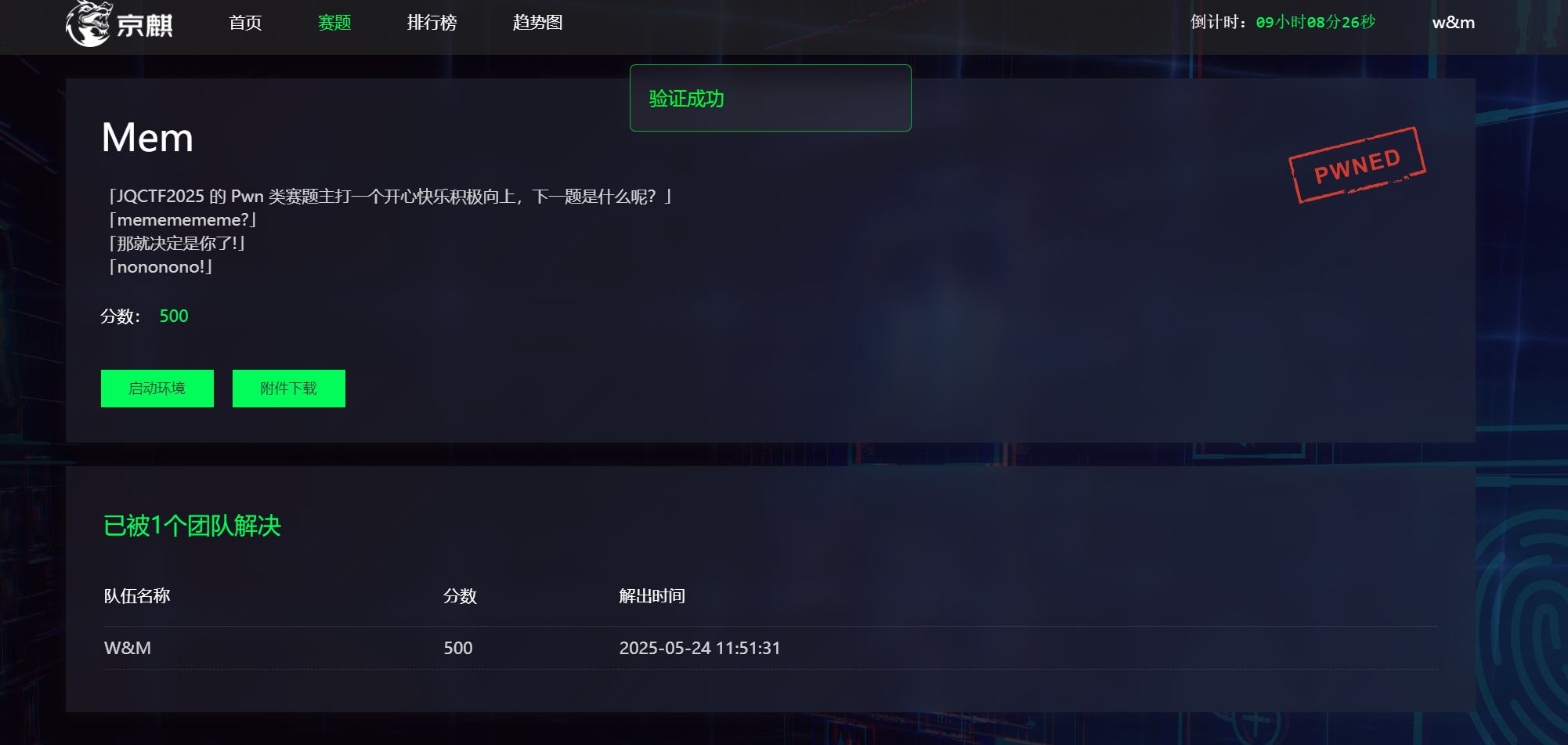 参加了 NeSE 的升级赛,大半年没做题题目做不出来(其实就差最后一步直接堆溢出改 tcache 的 fd 直接打就行),与 NeSE 无缘了,开摆,后面 CTF 少打,加不加都无所谓 :)